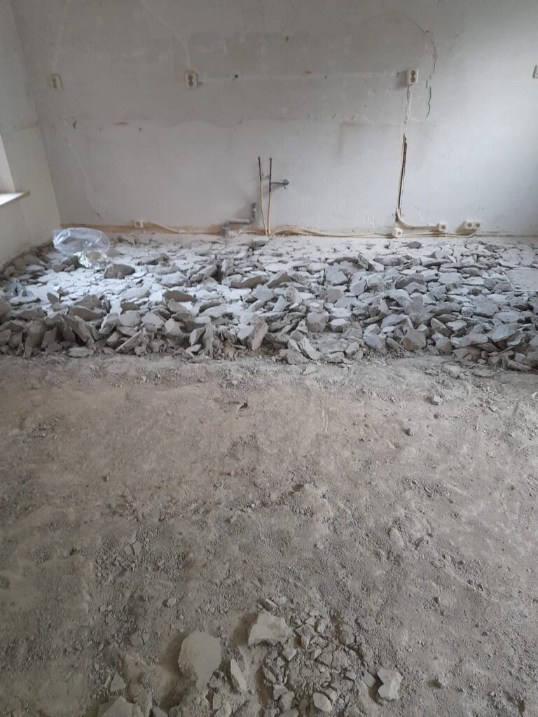 • Sloop: Wij demonteren en slopen de keuken zorgvuldig, inclusief kasten, werkblad, tegels en eventuele wanden. Al het vrijkomende puin wordt direct afgevoerd en de ruimte wordt netjes en veilig opgeleverd, klaar voor de volgende stap in de renovatie.